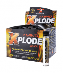 Amino Xplode draagt bij aan optimale groei en herstel van de spieren en voorkomt dat jouw spieren onnodig lang beschadigd blijven na een zware training. De ampullen bevatten g©©n koolhydraten en g©©n vetten. Ook ideaal tijdens een calorie-arm dieet. Ondersteunt snel herstel van de spieren na de training Unieke samenstelling van 10.000 mg L-vormige aminozuren per ampul Deze vrije vorm aminozuren hoeven niet meer verteerd te worden en kunnen daardoor direct in het lichaam worden opgenomen Bevat geen koolhydraten en vetten Stimuleert de hypofyse Makkelijk in te nemen, een ampul bevat 25ml vloeibare aminozuren