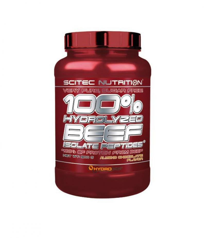 Scitec Nutrition 100% Beef Hydrolyzed Isolate overspoelt je spieren met zuiver rundereiwit en stimuleert spieropbouw. Voordat eiwitshakes populair werden, gebruikten de ouderwetse fitness fanaten dikke stukken steak als onderdeel van hun dieet. Hoewel steak een uitstekende bron van eiwitten is, zit het ook vol vetten en cholesterol, dat opgeslagen wordt als overtollig lichaamsvet en het risico op een hartaanval of het ontwikkelingen van een hartconditie verhoogt. Elke portie 100% Beef Hydrolyzed Isolate geeft je 25 gr gehydrolyseerd runder peptide eiwit afkomstig van geheel vers en natuurlijk rundvlees. Deze snel opneembare eiwitformule is zo krachtig dat de eiwit inhoud 390% meer geconcentreerd is dan een prime sirloin steak met zero vet! Met dit soort ondersteuning van eiwitten kun je in de kortst mogelijke tijd enorme winst in spiergroei en kracht ervaren. 100% Beef Hydrolyzed Isolate is een volledig eiwit. Dit betekent dat het alle EAA€™s (Essenti«le Aminozuren) en BCAA€™s (Branched Chain Aminozuren) bevat die de spiereiwit synthese ondersteunt en spierkatabolisme voorkomt. De smaak van 100% Beef Hydrolyzed Isolate zal je niet teleurstellen. Rijk, romig en lekker. Elke portie is heerlijk om op elk moment van de dag of nacht in te nemen. Gebruiksaanwijzing: Meng dagelijks 1 portie (30 g) in 250 ml water. Gebruik bij voorkeur een shaker en schud goed! De beste tijd om te gebruiken is na een training. Allergenen info: Gefabriceerd in een fabriek die melk, eieren, gluten, soja, pinda's, noten, vis en schaaldieren verwerkt. Belangrijk: Gebruik dit product in combinatie met voedsel als onderdeel van een gezond, uitgebalanceerd dieet, niet als vervanging daarvan. BUITEN BEREIK VAN KINDEREN HOUDEN! OVERSCHRIJD DE AANBEVOLEN DAGELIJKSE DOSERING NIET!