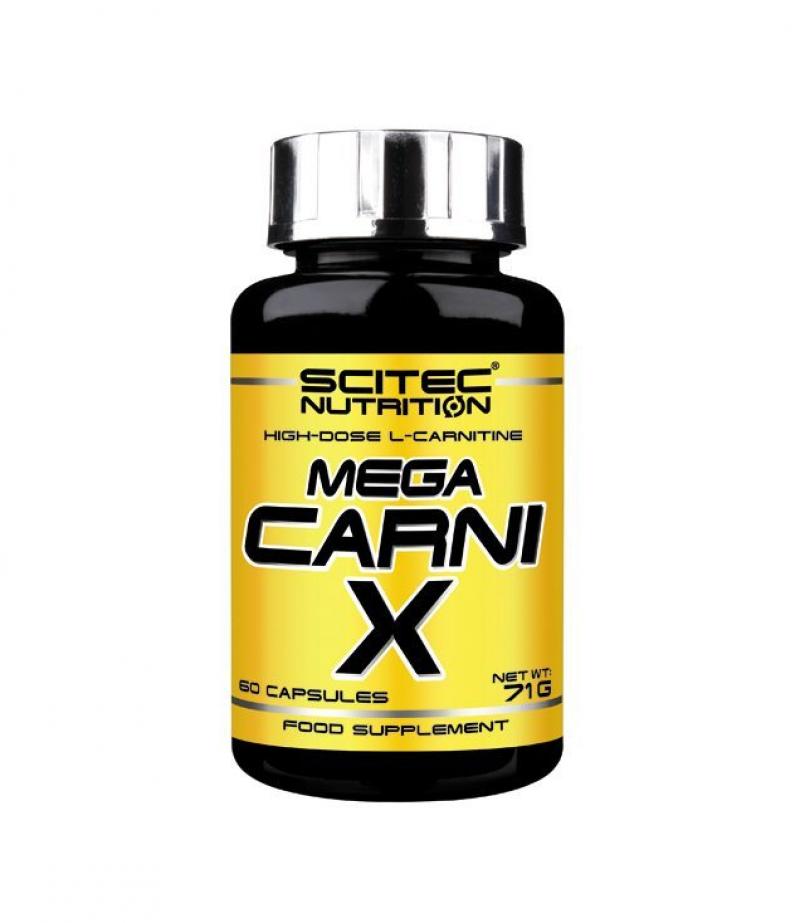 L-Carnitine is een veilige en effectieve aminozuurachtige substantie die een cruciale rol speelt bij de afbraak van vet en de energieproductie in het menselijk lichaam. L-Carnitine is absoluut noodzakelijk om een ??shuttlesysteem te vormen dat vetzuren transporteert naar de mitochondri«n van cellen om te worden afgebrand. Goede en voldoende beweging/krachttraining in combinatie met Scitec Mega Carni-X betekent een lager vetpercentage en een hogere spierdefinitie! Mega Carni-X biedt 1000 mg L-Carnitine L-tartraat per portie (per capsule). Het nemen van L-Carnitine in capsulevorm is een precieze en handige manier om L-Carnitine te doseren. Gebruiksaanwijzing: Neem 1 portie (1 capsule) MEGA CARNI-X 60 minuten voor de training. Neem op rustdagen een koolhydraatrijke maaltijd. Allergenen info: Gefabriceerd in een faciliteit die melk, eieren, gluten, soja, pinda's, noten, vis en schaaldieren verwerkt. Belangrijk: BUITEN BEREIK VAN KINDEREN HOUDEN! De aanbevolen dagelijkse dosering niet overschrijden! Gebruik dit product in combinatie met voedsel als onderdeel van een gezond, uitgebalanceerd dieet, niet als vervanging daarvan