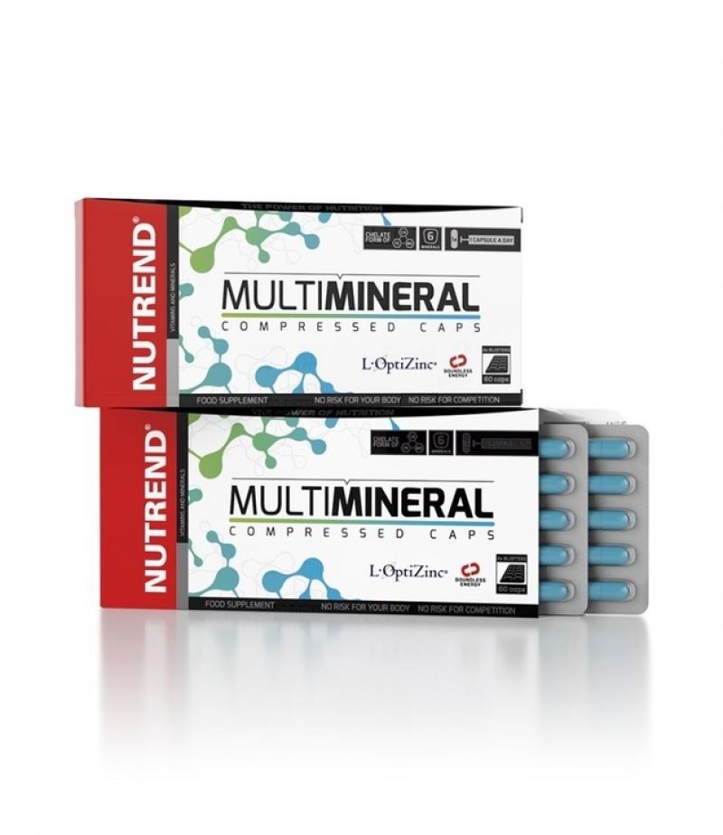 Capsules met 6 mineralen Multimineral Compress Caps van Nutrend is een zeer effectief product met 6 mineralen dat past in een uitgebalanceerd dieet. Naast dat dit product voor iedereen geschikt is, is het met name voor sporters die een zwaar trainingsprogramma volgen een zeer goede aanvulling. Het bevat de mineralen magnesium, calcium, zink, ijzer, chroom en selenium. Calcium voor het behoud van sterke botten. Bevordert de energiestofwisseling. Helpt de normale spierwerking behouden. Calcium ondersteunt het behoud van een gezonde spijsvertering. Magnesium activeert je natuurlijke energie in het lichaam en helpt om vermoeidheid en moeheid te verminderen. Het speelt een rol bij het behouden van soepele spieren en zorgt mede voor het goed functioneren van het zenuwstelsel. Draagt bij tot de instandhouding van normale botten. Speelt een rol in het celdelingsproces en een normale eiwitsynthese. Draagt bij tot een goede elektrolytenbalans. Zink draagt bij tot een normaal metabolisme van koolhydraten en vetzuren, en draagt bij aan eeen normale stofwisseling van koolhydraten, vet en eiwitten. Draagt bij aan de aanmaak van cellen en weefsels. Heeft een anti-oxidatieve werking. IJzer helpt ??bij de vorming van rode bloedcellen en hemoglobine en normale zuurstofoverdracht. Draagt bij aan extra energie bij vermoeidheid/moeheid en speelt een rol in het proces van weefselgroei en - ontwikkeling. Chroom zorgt mede voor het behoud van een natuurlijke bloedsuikerspiegel. Selenium helpt cellen te beschermen tegen oxidatieve stress, helpt om vrije radicalen en metabolisme onder controle te houden.